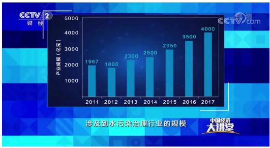 這張圖顯示出在2015年以后涉及到水污染治理行業(yè)的規(guī)模逐漸地增加,2014年時(shí)是2500億元,2015年則變成2950億元,2017年達(dá)到4000億。從2500億元到4000億元是跨越式的發(fā)展,按照現(xiàn)在的估計(jì)如果完成“水十條”的話(huà)會(huì)帶動(dòng)社會(huì)投資4.7萬(wàn)億元,而能夠帶動(dòng)環(huán)保產(chǎn)業(yè)增長(zhǎng)是1.9萬(wàn)億元,這個(gè)數(shù)字表明環(huán)境治理它不是一個(gè)僅花錢(qián)不掙錢(qián)的事情,它還能帶動(dòng)社會(huì)經(jīng)濟(jì)快速和高質(zhì)量發(fā)展。