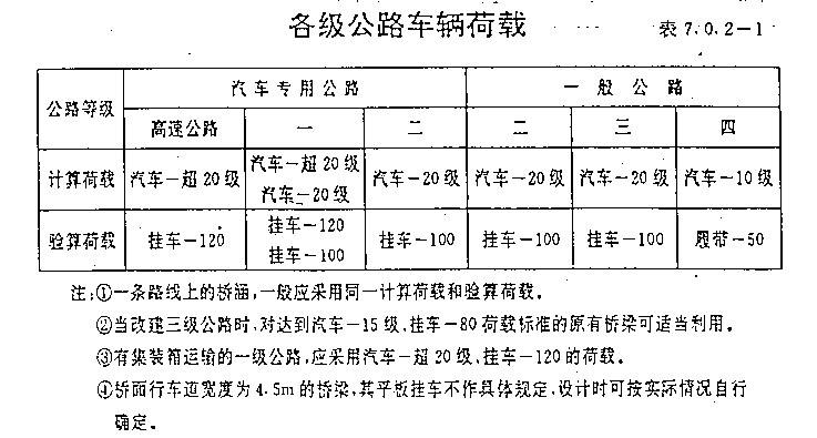 85規范中,分為兩種荷載:汽車荷載與平板掛車履帶車荷載。