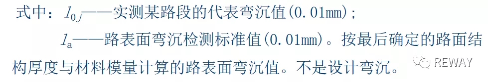 8.0.15 路面交工時應在不利季節(jié)以BZZ-100標準軸載作用下,實測輪隙中心處路表彎沉值,其彎沉代表值應符合式(8.0.15-1)的要求。即: