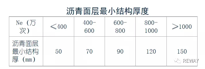 (1)當采用半剛性基層瀝青路面時,高速公路、一級公路的瀝青層厚度宜為120~160mm,二級公路的瀝青層厚度宜為70~120mm,三級公路的瀝青層厚度宜為20~50mm,四級公路的瀝青層厚度宜為10~30mm。